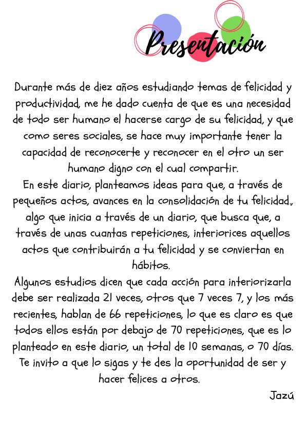 Cada día realizas actos en pro de tu felicidad, guárdalos, y mira como estos pequeños actos te cambian la vida, siente como cada día es más fácil sentirte feliz.